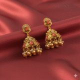 Bring timeless elegance to your festive look with these stunning Temple Design Jhumka Earrings, inspired by the grandeur of South Indian temple architecture.