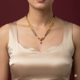 Our Elegant Gold-Plated Diamond Mangalsutra is more than just jewelry—it’s a symbol of love, trust, and lifelong togetherness. Designed for today’s modern bride, this piece combines classic black beads with a stunning diamond-studded pendant to create a perfect balance between tradition and contemporary fashion.